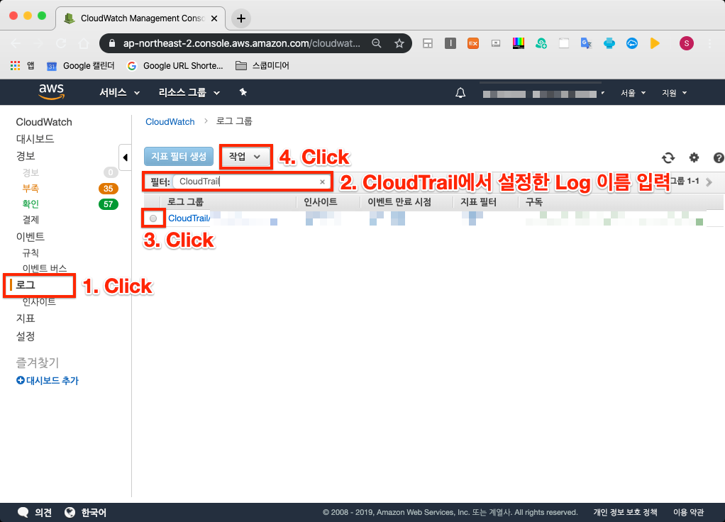 CloudTrail → CloudWatch → Lambda로 로그 전송 설정
