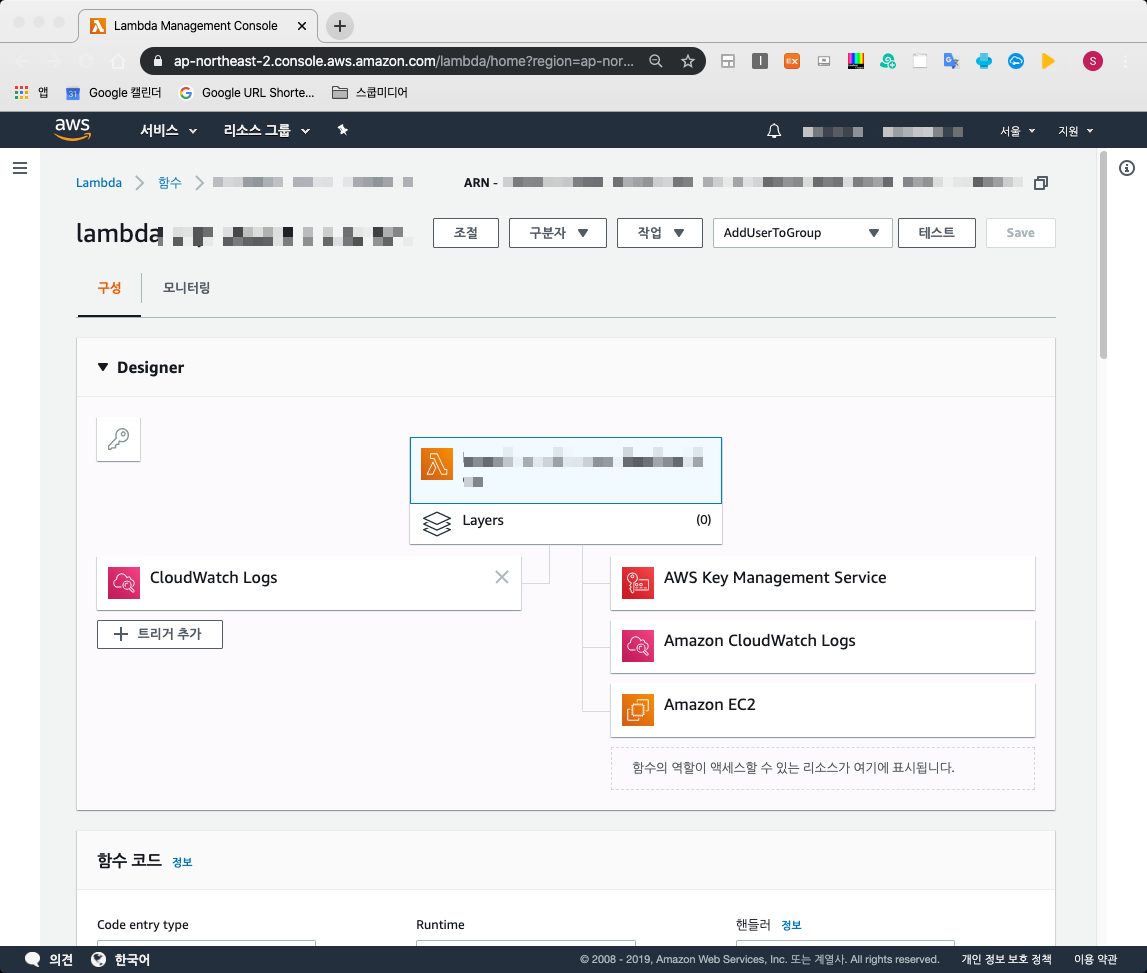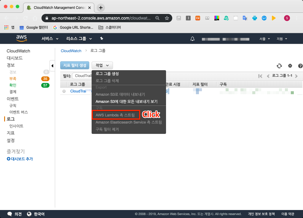 생성 함수는 CloudWatch Logs → Lambda로 전달 받을 수 있어야 함.
