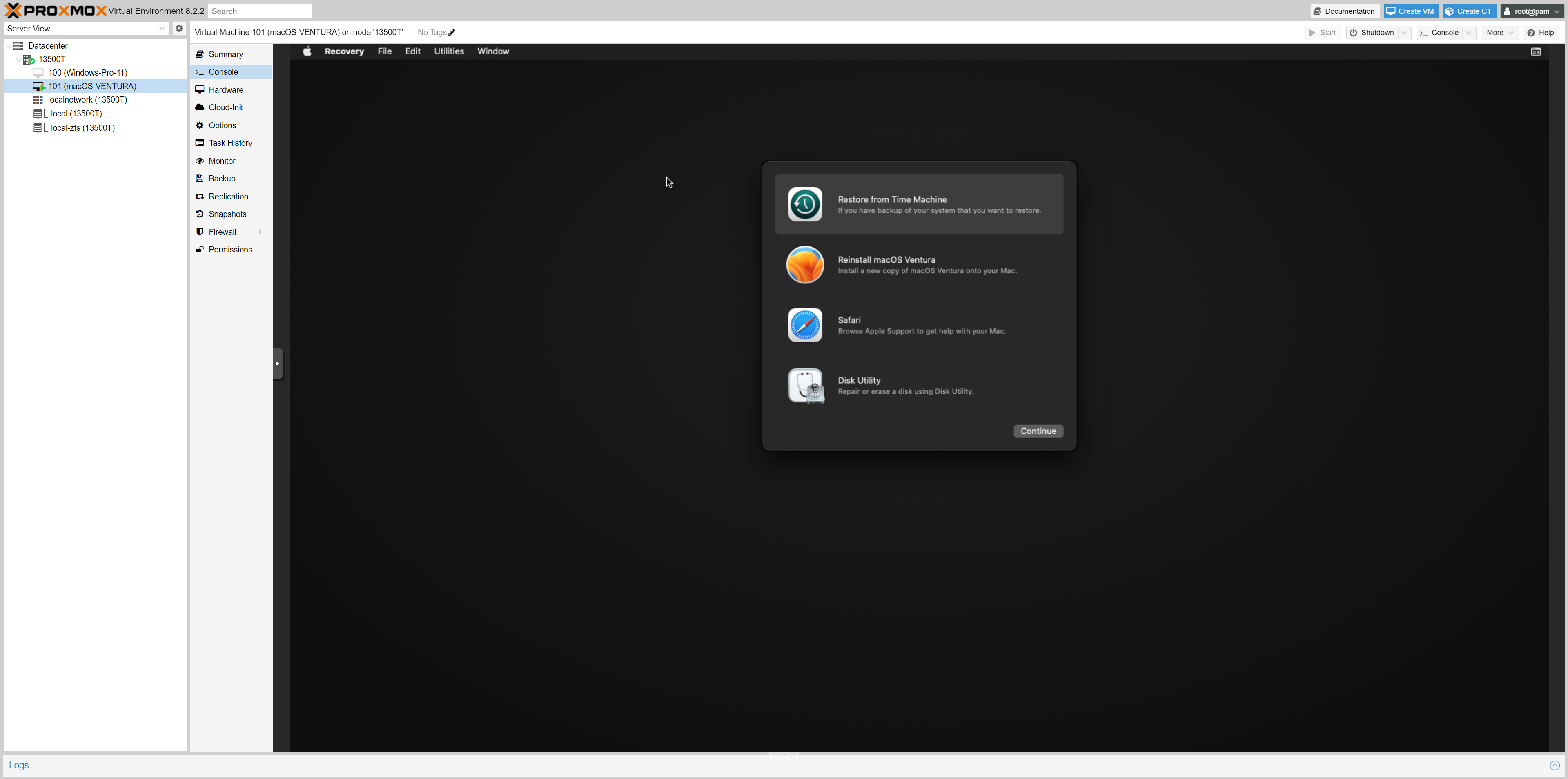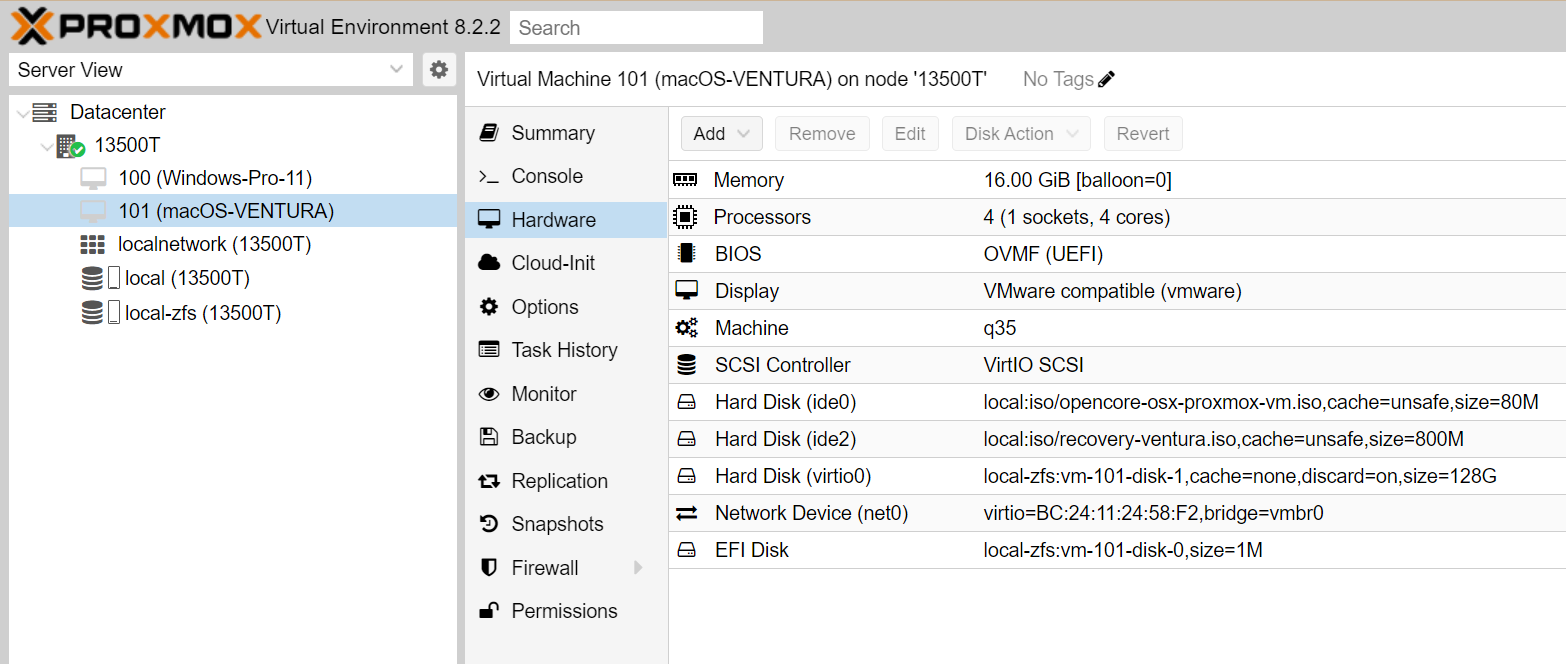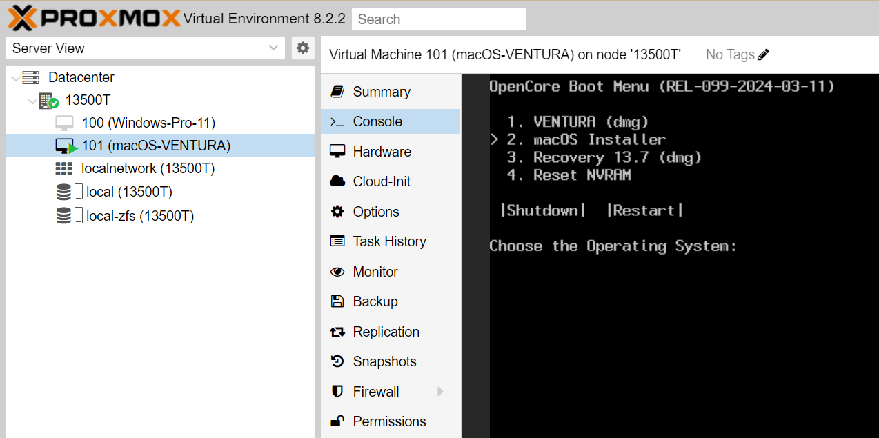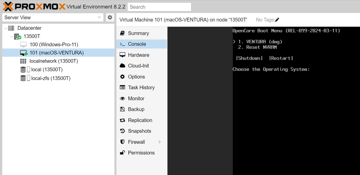 참고로 저는 6 번으로 했습니다. (macOS Ventura - 13) / 7번으로 하니까 proxmox 콘솔에서 작동이 안되네요.