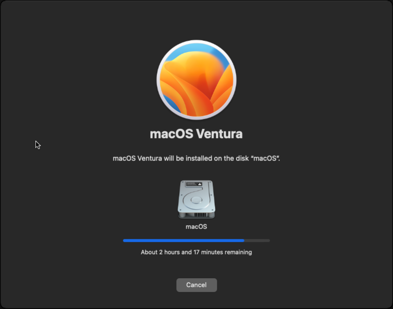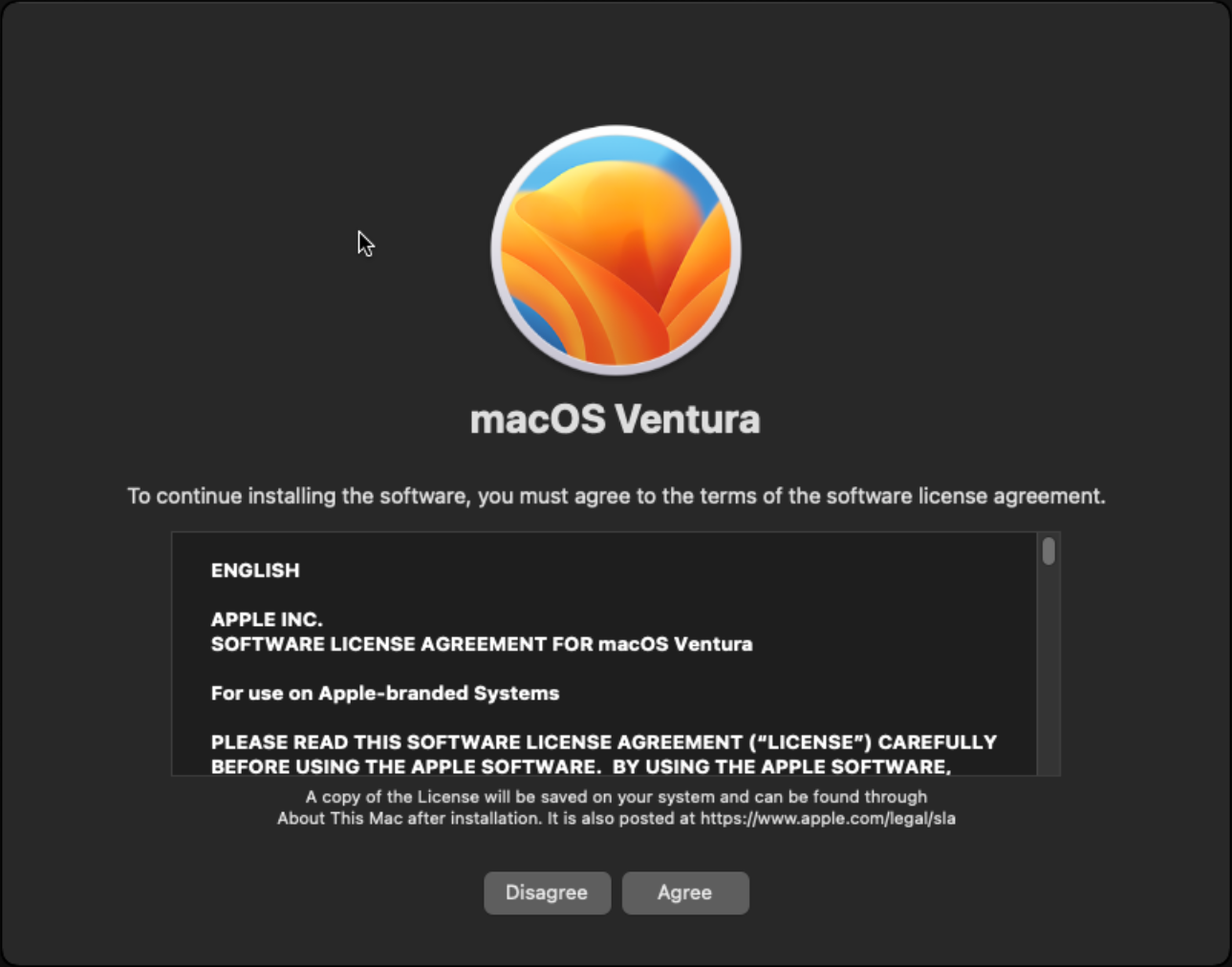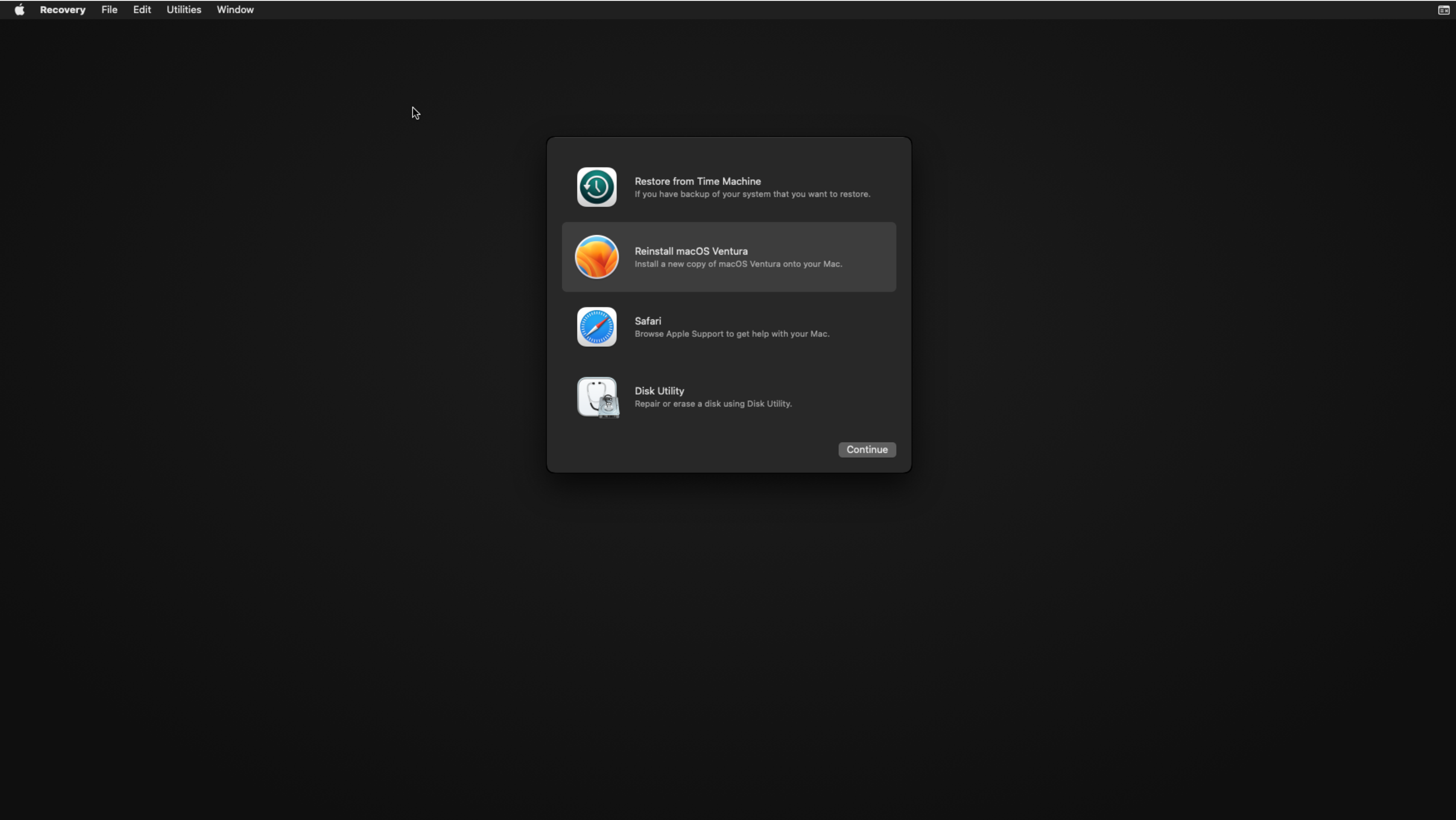 Reinstall macOS Ventura를 선택하여 설치를 진행합니다.